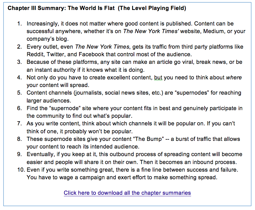 And that’s the most important point in this book: your work has to be great to stand out. But if you make something great, your content is on level playing field with the work produced by the most prestigious news sites and analysts in the world.