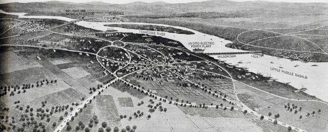 Ford’s vision for Muscle Shoals was a city as thin as Manhattan but five times as long. It would enrichen a destitute area, but more importantly to Ford, it would industrialize the valley without destroying agriculture or creating urban sprawl. The great industrialist saw cities as dens of sin whose trapped residents couldn’t “get a smell of country air.” At Muscle Shoals, residents of the thin city would never be far from nature, and they could work in both the farm and the factory.