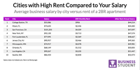 An analysis of how much the typical "business" job pays in a city versus rent.