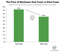 Marijuana is 22.5% cheaper on the West Coast than East.