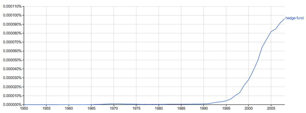 Mention of the words “Hedge Fund” by Year According to Google Books